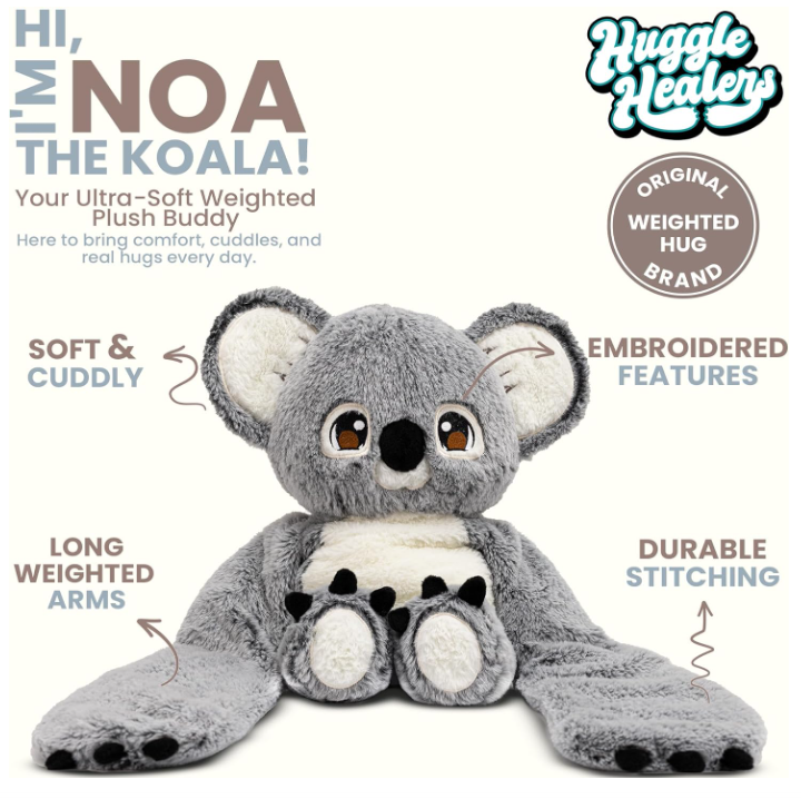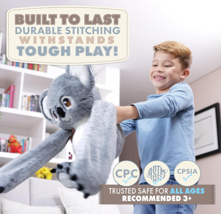 - Noa, the koala stuffed animal, features 40-inch arms designed to provide soft experience for both adults and kids